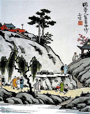 豐子愷是李叔同的得意門生,所以對歌詞的印象及理解都十分的深刻。他在編輯李叔同《中文名歌五十曲》時將其收入其中,也在自己的文章中作過詳細的解說。豐子愷說:“萬花飛舞春人下”,就這一句,末腳一個“下”字很奇怪,除非人用崔眠術(shù)騰空行走,花怎會在人下面飛舞呢?但看了上句,就知道原來是源自“游春人在畫中行”。這不是看畫的“平面化”,而是人在其中的“行”。